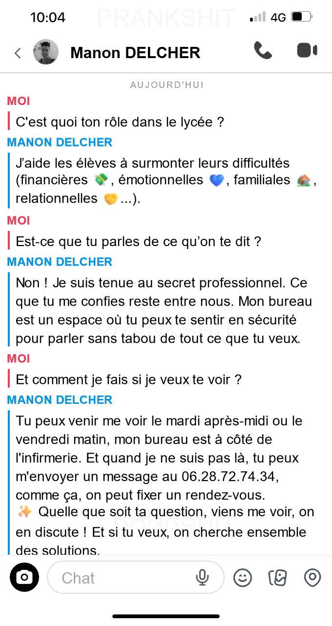 Au lycée, je sais que je peux aller voir Manon DELCHER, assistante sociale.
