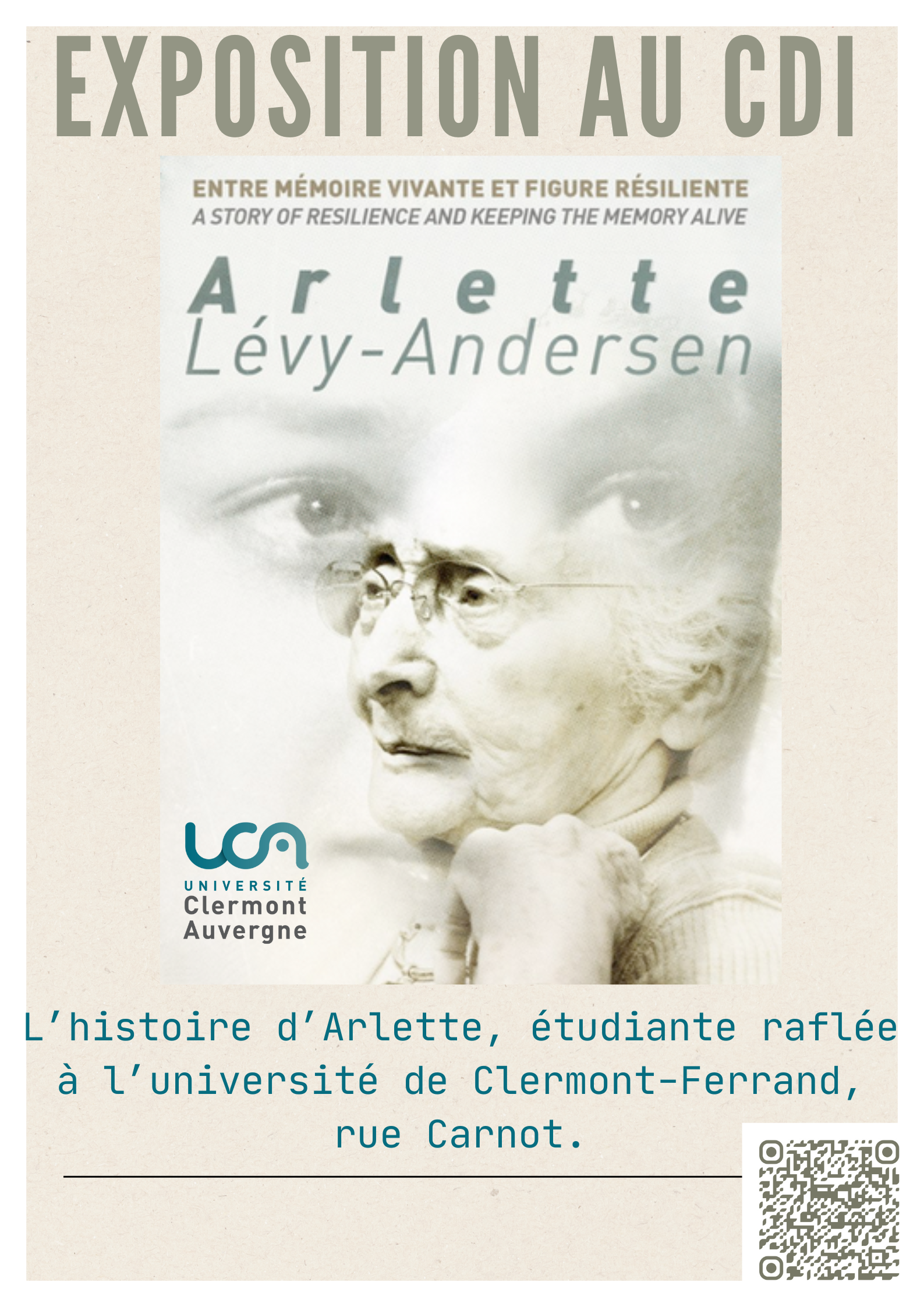 Arlette Lévy-Andersen a été raflée à l'Université de Clermont-Ferrand, rue Carnot et déportée à Auschwitz en 1943. C'est avec résilience qu'elle a tenu à raconter son histoire. A découvrir, pour ne jamais oublier.